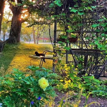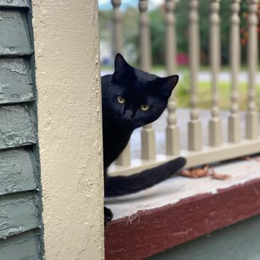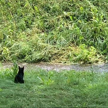 Our black rescue cat Leo loves greeting guests as they arrive at the BW Boutique Hotel. When he’s not busy “protecting” the grounds, you might find him fishing in Knowles Creek or lounging in the gardens. Property manager Paige thinks he’s a tad overweight, but Sonya continues to reward Leo daily for all of his hard work with a fresh can—or 2—of tuna. Guests of The Flat will find Leo proudly featured in an oil painting displayed inside. The piece, commissioned by a local artist, is a reminder that Leo’s likeness belongs in The Flat, but he does not. Leo tries to convince anyone who will listen that he should join them inside, so watch out for his charms. He lives in the loft above The Flat and try as he might, Leo is not allowed inside. He is crafty though, and we still get calls that our favorite feline has been spotted listening to tunes in the T. Willie Bar Room or trapping lint in the self-service laundry. Leo’s favorite pastimes include attending weddings at the Bridgewalk Estate, bringing home alley cats who need love & shelter, riverboat watching at The Cottage, frequent naps in the bunk room at Northern Nights Chalet, traveling with Sonya, partner at Wanderlust Abodes, and driving Holly crazy trying to “help” on big cleaning days. We hope you LOVE Leo & his lavish life as much as we do!